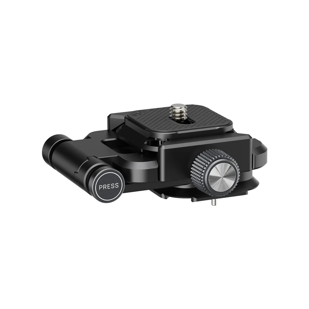 Foldable L-Bracket. Vertical & Horizontal Quick Switching Effortlessly switch from horizontal to vertical shooting via a press button. Compatible with most quick-release plates. Lock and unlock easily with a twist knob.