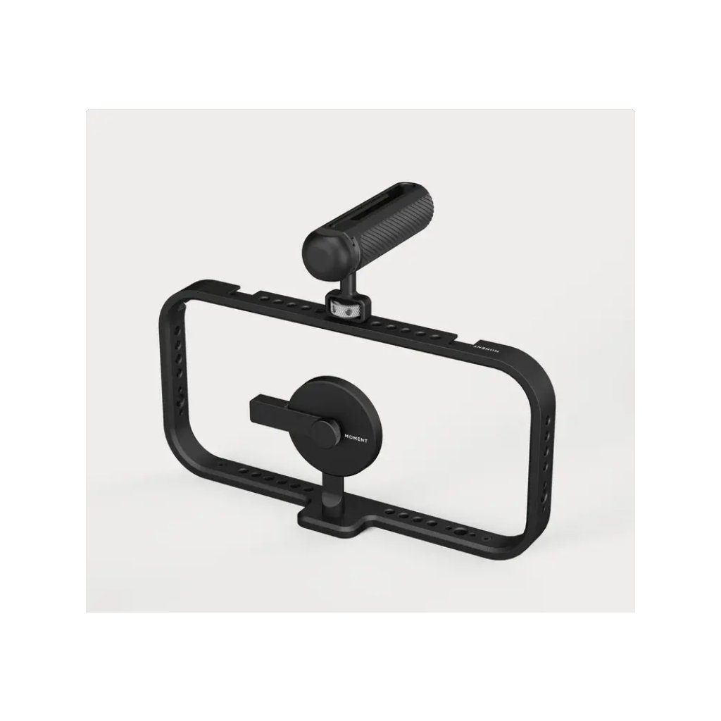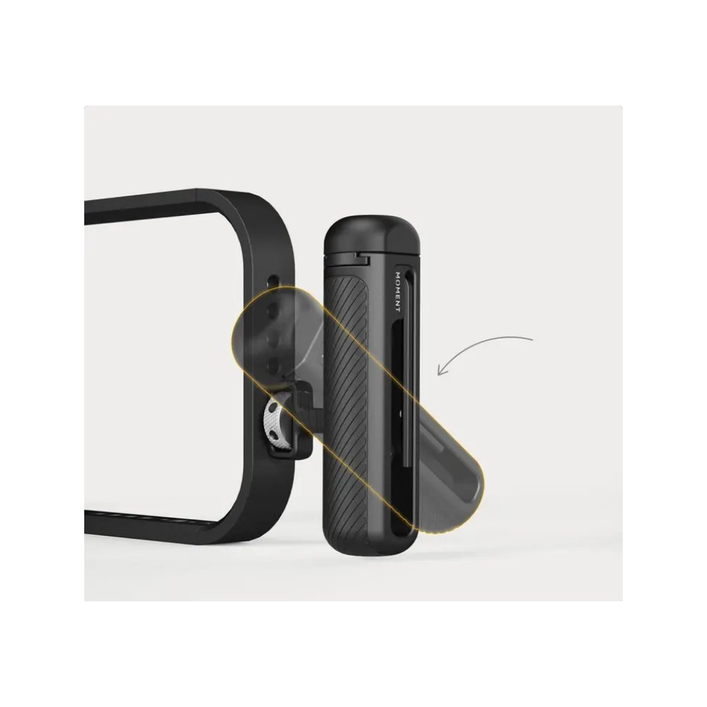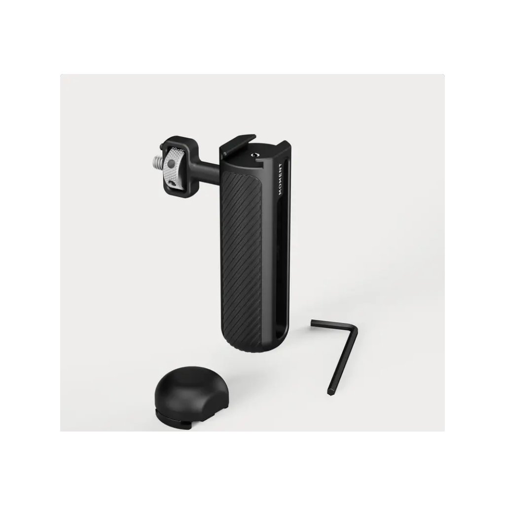 Designed for the mobile creator, the Moment Universal Mobile Grip is the ultimate rig handle, combining strength, adjustability, and ease of use. Engineered with a machined aluminum unibody and rubber grip, it provides a secure and comfortable hold. Its universal design mounts onto any cage with a 3/8”-16 thread at 9mm hole distances, offering a stable base for adding accessories. Featuring full 360° rotation, it lets you mount as a side or top handle, and the cold shoe mount allows attachment of additional accessories like lights or mics, complete with an anti-off pin for secure positioning.