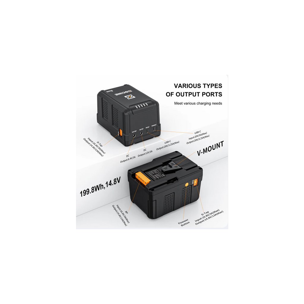 The ZGCINE 200Wh V-Mount Battery is a versatile and high-performance power source designed for filmmakers, videographers, and content creators. With its large 200Wh capacity, it provides extended runtime for a variety of devices, including cameras, monitors, LED lights, and more.