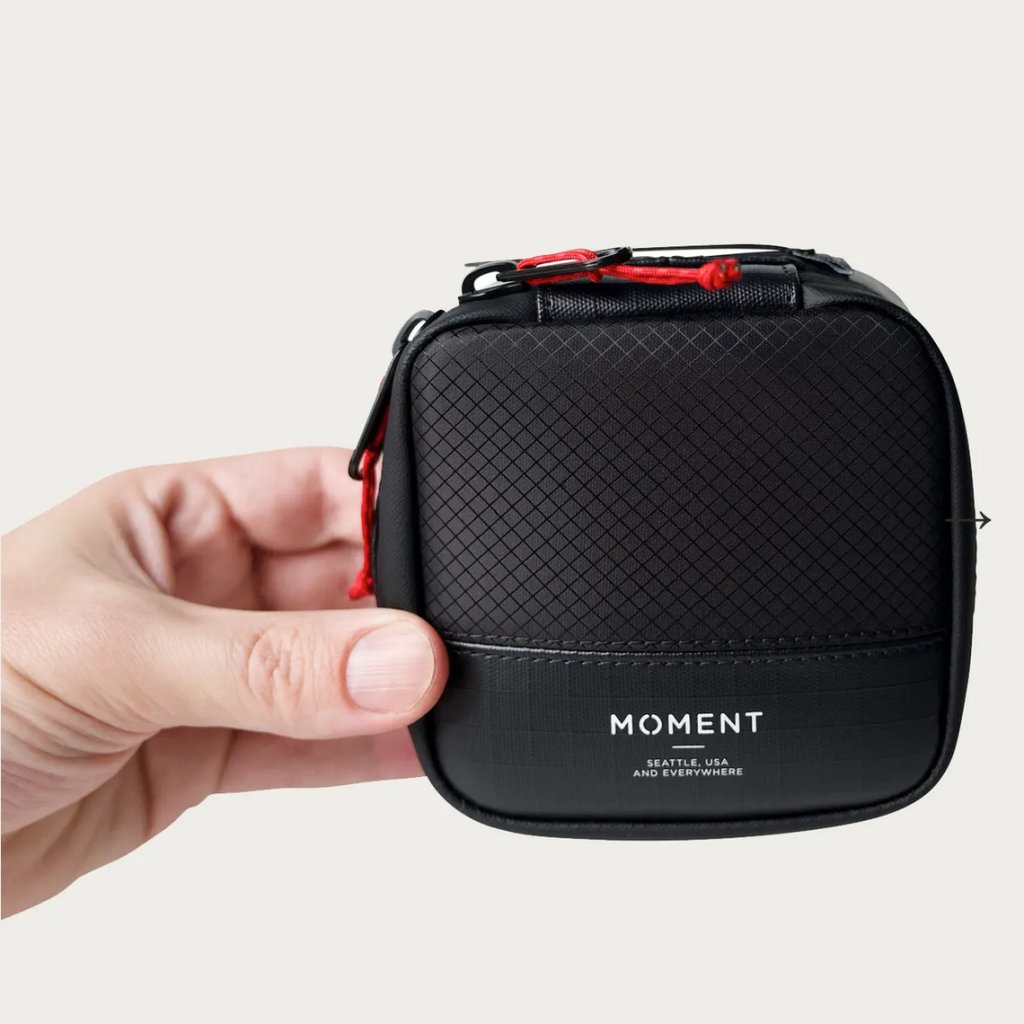 The Moment Weatherproof Mobile Lens Carrying Case is built for photographers who venture into harsh environments and need reliable lens protection. This durable case combines rugged tarpaulin and ripstop materials with a weatherproof zipper, ensuring that your lenses are safe from the elements. Inside, padded dividers secure two of your favorite Moment lenses, while removable dividers allow for flexible storage of additional items. There’s also room for Moment’s 67mm and 37mm filter mounts and cases, two SD/CFexpress card slots, and space for most compact SSDs, making this case a compact, all-in-one storage solution for your mobile photography gear.
