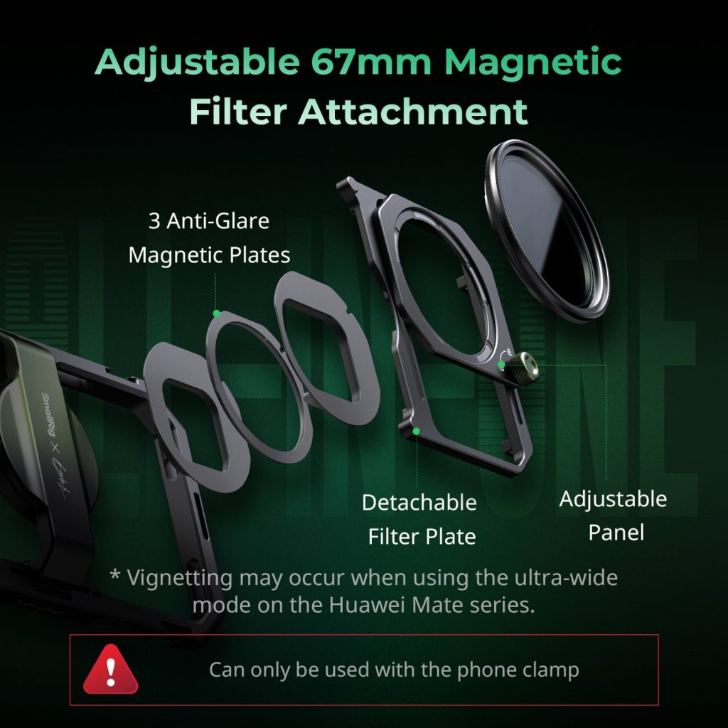 SmallRig x Brandon Li All-in-One Mobile Video Kit Full Quick Release Co-design Edition 4596B is the perfect one-stop solution for professional smartphone video shooting. The kit includes a universal mobile phone cage, a rotatable side handle with M.2 SSD enclosure and wireless remote controller, a 67mm universal filter adapter, a magnetic 67mm VND 2-32 (1-5 Stop), a 4-In-1 USB-C docking station, an Arca-Swiss quick release adapter, a power bank holder, and other accessories. The universal cage supports 67mm magnetic filters, providing anti-glare solutions for most mobile phones and reducing filter light leakage. The rotatable side handle with wireless control integrates multiple functions and features an enclosure for M.2 SSD to support direct external recording. The detachable wireless control enables remote shooting, focusing, and zooming in/out. Stepless rotation of the handle adapter allows instant switching between the side and top handle modes, while the quick release mechanism on both sides enables swift, tool-free assembly and adjustment. Also, the kit comes with an Arca-Swiss quick release adapter, supporting quick attachment to the cage and professional tripods. The cage kit provides multiple standard 1/4"-20 threaded holes and cold shoe mounts, supporting the free combination of accessories, and providing more possibilities for shooting. The 4-in-1 USB-C docking station offers a high-power PD 100W charging port, a USB-C 3.1 port, and two USB-C 2.0 ports. When used for mobile videography, it enables simultaneous charging, ProRes video storing, and utilization of a USB-C microphone.
