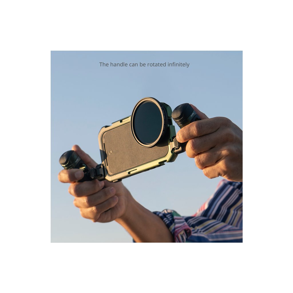 This versatile kit merges a lightweight travel photography setup with a dual-handheld mobile video cage, accommodating various shooting needs across different environments. The enhanced mobile video cage is specifically designed for the iPhone 16 Pro Max, allowing compatibility with protective cases while providing extensive expansion options and all-around protection for your device.